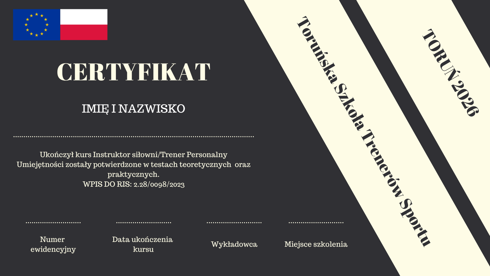 Po ukończeniu naszego szkolenia otrzymasz certyfikat w języku polskim i angielskim, legitymację instruktorską oraz ogromną dawkę praktycznej wiedzy, która pozwoli Ci rozpocząć karierę trenera personalnego.